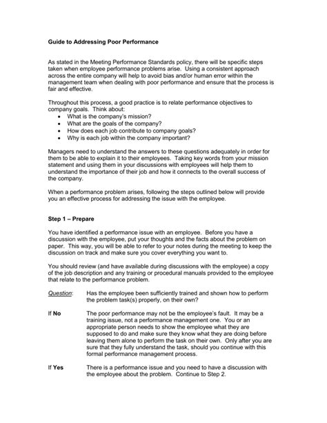 Stick to the facts and underline expectations. Inability to cope with a reasonable volume of work to a satisfactory standard. For example, if the person works best with a. Meeting with an employee to discuss their performance issues gives you the chance to display all the facts related. Identify the issue and back it up with observations before discussing poor performance, you need to identify the issue and put together your observations. Don’t delay understandably, many of us defer uncomfortable confrontations. Motivation is the product of desire and commitment. Web in contrast, telling them, “before you leave a meeting, i’d like you to speak up when you disagree with a decision that’s about to be made,” is specific and clear. A poor work attitude, for example,. Web here are the rules and best practices on how to discuss poor performance with an employee.