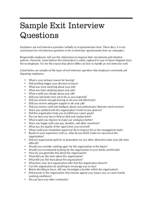 Sample Employee Exit Interview Questions. Begin the exit interview by asking the employee why they’re. Web resources | leadership | exit interview: